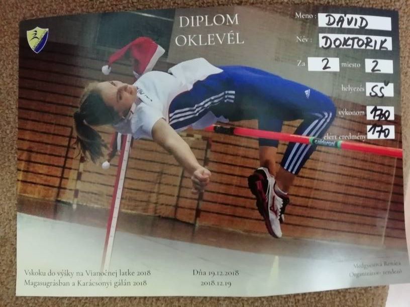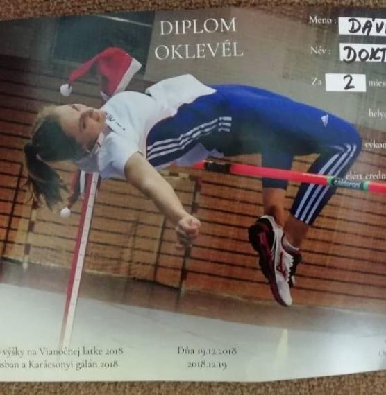 19.12.2018 na Vianočnej latke 2018 v skoku do výšky v kategórii chlapcov Dávid Doktorík s výkonom 170 cm získal 2. miesto, v kategórii dievčat Nikolett Varga s výkonom 145 cm sa umiestnila na 1. mieste a Anna Ollé získala4. miesto. Gratulujeme !!!