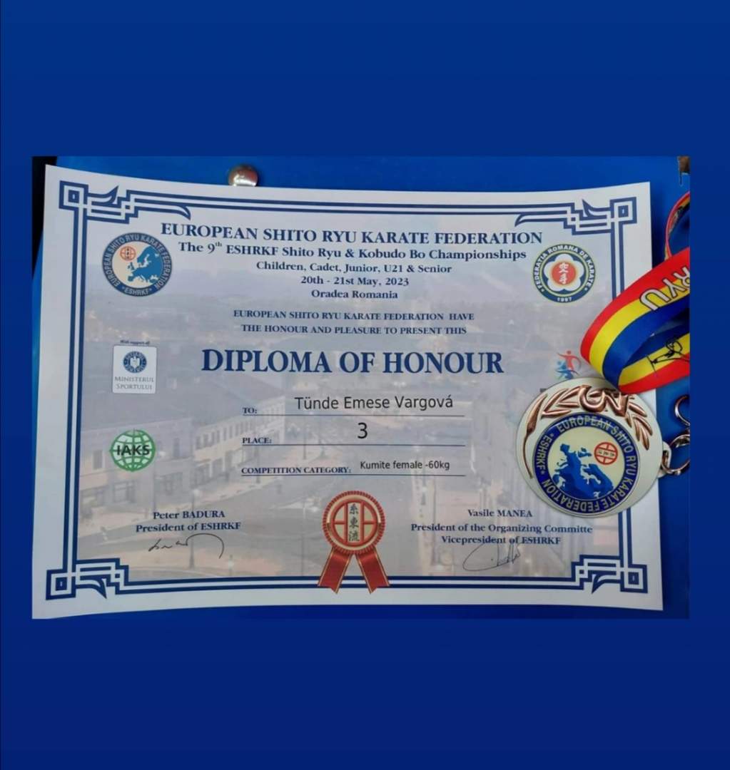 Vynikajúci úspech Tünde Emese Varga v karate na majstrovstvách Európy a sveta. V dňoch