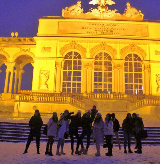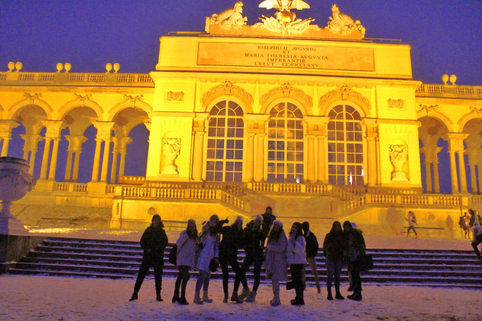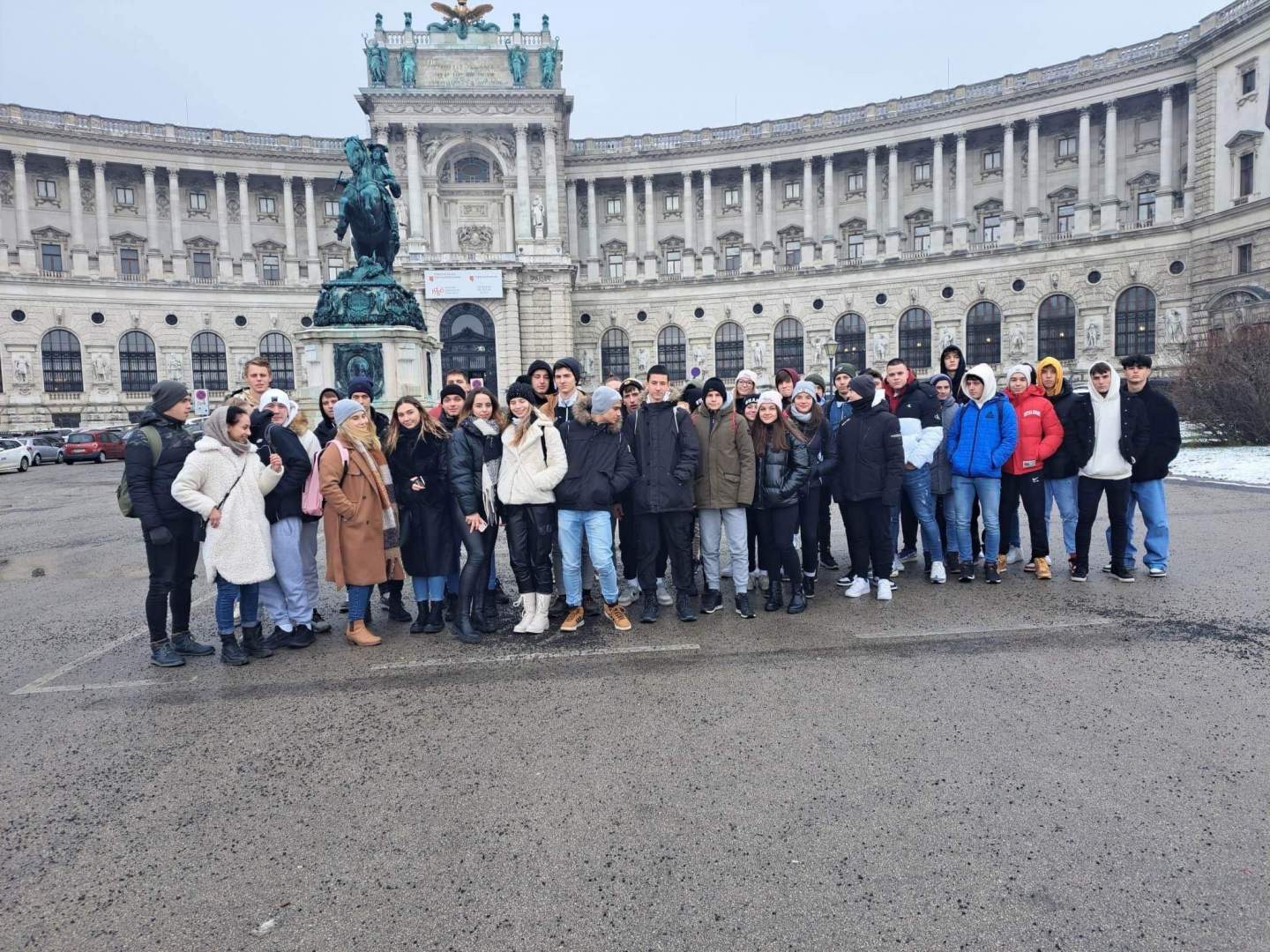 2022. december 15-én az I.SM, I.B, III.SG, III.D és IV.SG osztályok tanulmányi kiránduláson vettek részt az osztrák fővárosban. Első programpontként a főbb nevezetességeket nézték meg egy városnéző séta keretében. Látták a Habsburgok téli rezidenciáját, Széchenyi István szülőházát, bementek a Stephansdomba, majd a Kärtnerstrassén folytatták útjukat. A Sacher szállót, az Operát érintve a Burgringen kötöttek ki, és Mária Terézia szobra, valamint a Szépművészeti Múzeum és a Természettudományi Múzeum épülete mellett elsétálva, az osztrák Parlament épületét megcsodálva jutottak el a Városháza térre. Az itt megrendezett vásárban töltöttek el néhány órányi szabadidőt, megkóstolhatták az osztrák karácsonyi gasztronómiai különlegességeket és gyönyörködhettek a pazar ünnepi díszítésben. A nap utolsó állomása és egyben fénypontja a Schönbrunn kastély volt. A Habsburgok nyári rezidenciájának parkjában lévő Gloriette-hez is „felkapaszkodtak“ a diákok, sőt még egy rögtönzött hógolyócsatára is sor került. A kastélyudvarban megrendezett kézművesvásárban a csodás karácsonyi portékák közt válogattak és a gyönyörködtek a kilágított épület és a feldíszített karácsonyfa pompájában. Este igazi karácsonyváró hangulatban, sok örömteli élménnyel gazdagodva érkeztek haza Bécsből.