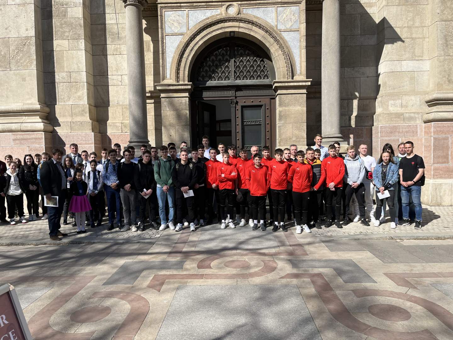 Iskolánk sportosztályos diákjai március 28-án Budapesten részt vettek a Szent István Bazilika altemplomában megrendezett Aranycsapat-megemlékezésen. A megemlékezésre az Aranycsapat 1952-es Helsinki olimpiai diadalának 70. évfordulója alkalmából került sor. A rendezvény a Kárpátia Sporttársulat, az Aranycsapat Testület és az MTK Baráti Kör közös szervezésében valósult meg. A megemlékezés a magyar nemzeti himnusz eléneklésével kezdődött, majd beszédet tartott Pallag György, a Kárpátia Sporttársulat elnöke, Lomnici Zoltán, az Aranycsapat Testület elnöke, majd az AranycsapatotméltattaBozsik Péter, Bozsik József fia. A megemlékezés legvégén iskolánk diákjai megkoszorúzták Puskás Ferenc sírhelyét. Ezt követően megtekinthették Európa egyik legmodernebb labdarúgó akadémiáját, a Puskás Akadémiát, és az egyik legszebb stadionját, a Pancho Arénát.
