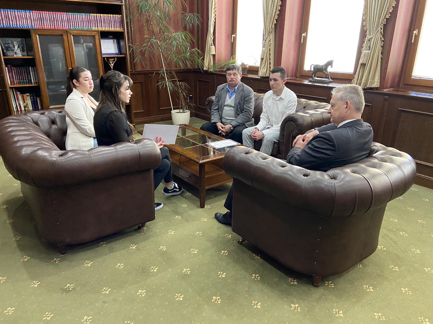 Dr. Hájos Zoltán, városunk polgármestere ma hivatalában fogadta Németh Evelint, a Szent István téri Közös Igazgatású Középiskola diákját, akit a városi ifjúsági parlament tegnap választott meg diákpolgármesternek, valamint a diákpolgármester-választás további két jelöltjét, Dziadek Tamást, a Kodály Zoltán Alapiskola, és Tóth Kamillát, a Neratovicei téri Magán Szakközépiskola diákjait, akik a jövőben alpolgármesterekként segítik majd Németh Evelin munkáját. Városunk polgármestere hivatalosan is beiktatta a diákpolgármestert, valamint az alpolgármestereket, majd eszmecserét folytattak a fiatalok elképzeléseiről és a jövőbeli lehetőségeikről.