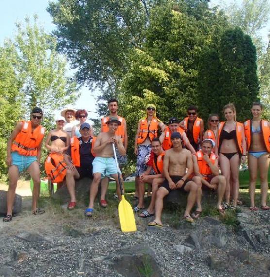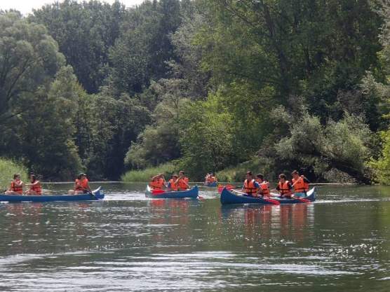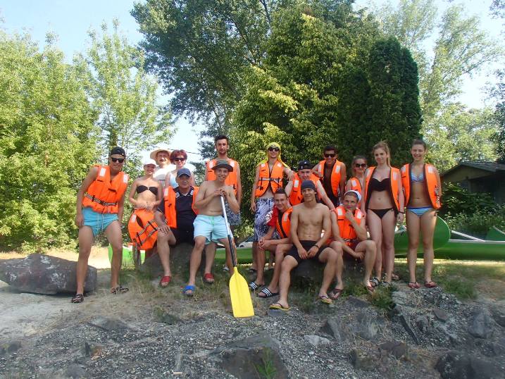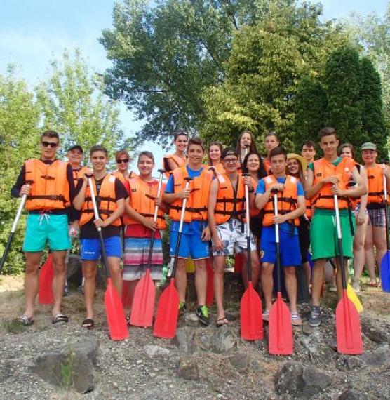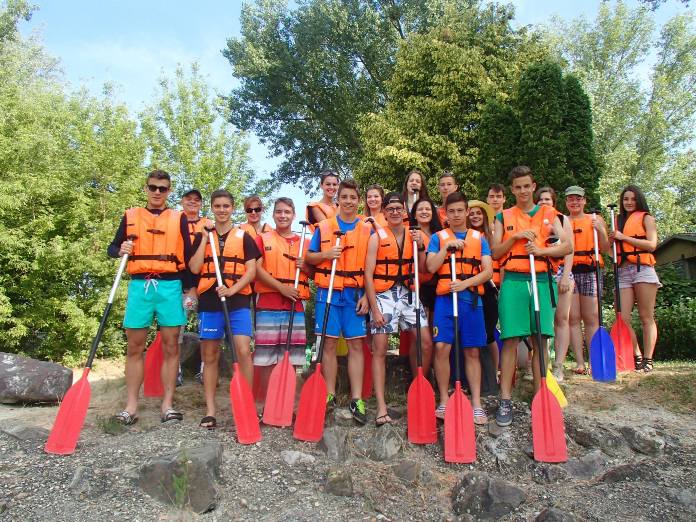Mivel még sokan nem eveztek korábban, egy kis időbe telt, amíg mindenki elsajátította az evezés művészetét. A kezdeti problémák után egyre magabiztosabban szelték a vizet. A túlzott felbátorodásnak pár borulás lett a vége, de ez egyáltalán nem szegte a diákok kedvét. Később az élményeinket tovább fokozta a természet által kialakított csúszda kipróbálása.