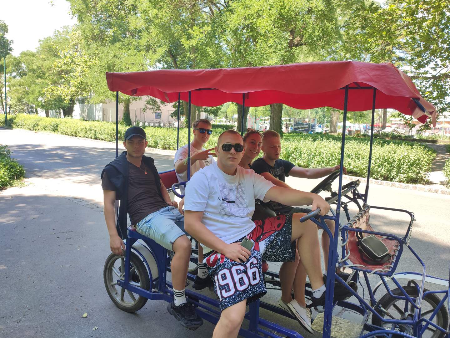 Másnap bőséges reggeli után ellátogattak a Margit-szigetre, ahol bringóhintóval körbetekerték az egész területet.