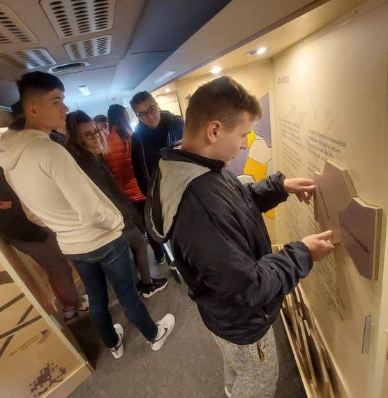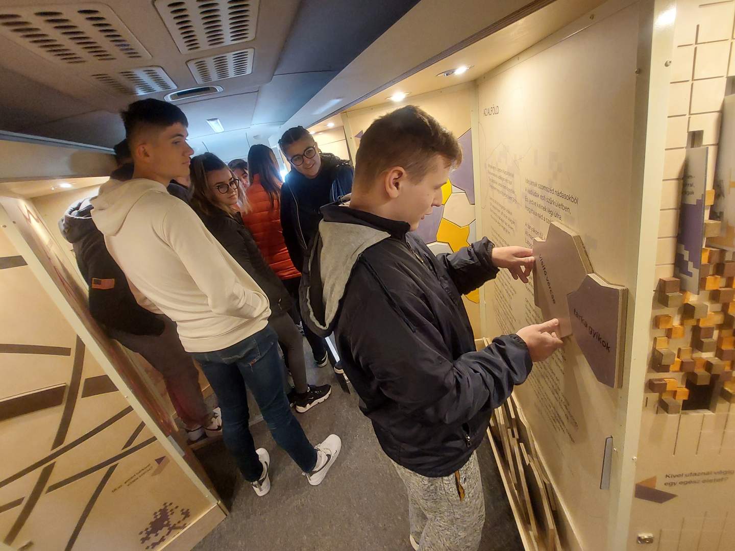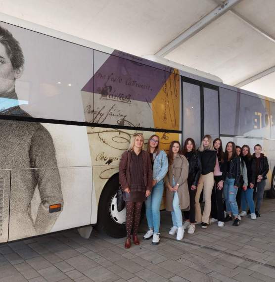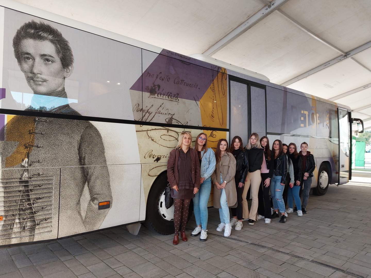Petőfi Sándor születésének 200. évfordulója alkalmából a Petőfi Irodalmi Múzeum új vándorkiállítása múzeum-busz formájában Dunaszerdahelyre érkezett. Diákjaink is „felszálltak“ a különleges járgányra, és egy időutazás keretén belül megismerkedhettek a magyar irodalom XIX. századi „költőinfluenszerének“ életeseményeivel, kapcsolataival, kedvenceivel. Az interaktív kiállításon minden szabad volt, ami egy hagyományos múzeumban tilos. A diákok minden „múzeumi tárgyat“ megfoghattak, kipróbálhattak, miközben érdekesebbnél érdekesebb információkat hallhattak a költő mindennapjairól, különleges szokásairól, írói pályájának legizgalmasabb történéseiről.