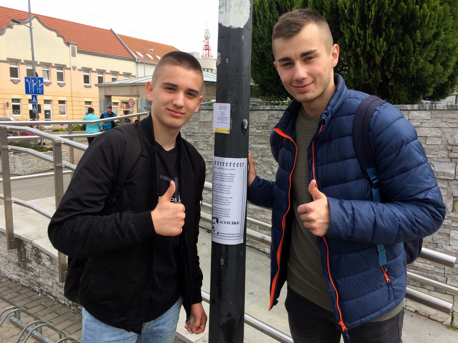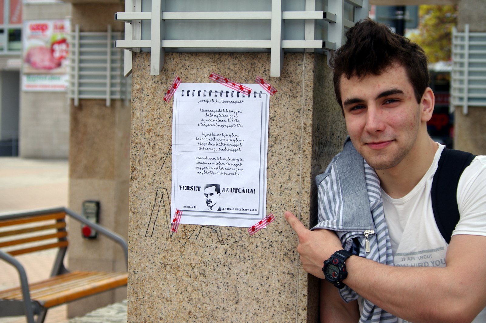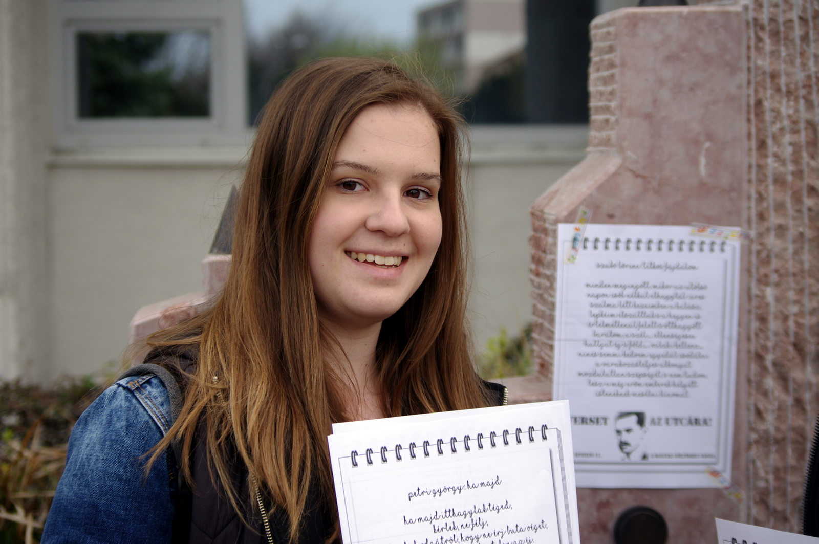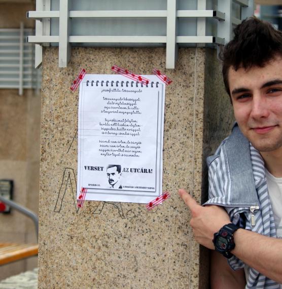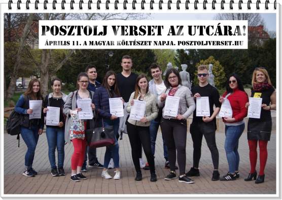 Diákjaink idén is bekapcsolódtak a Posztolj verset az utcára! világraszóló költészetnapi akcióba, amelynek a célja a következő: "Legyen egy nap a magyar versé, árasszuk el a hirdetőoszlopokat, valódi üzenőfalakat, járdákat, és minden legálisan posztolható felületet versekkel! Lepjük meg egymást és magunkat valami igazán értékessel: a kedvenc verseinkkel."