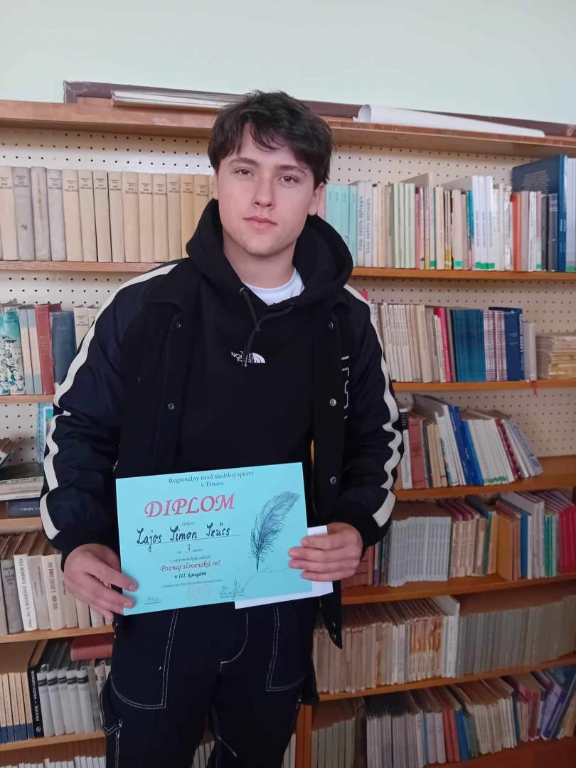 z III. SM triedy sa zúčastnili na okresnom kole súťaže ,, Poznaj slovenskú reč“. Lajos Simon