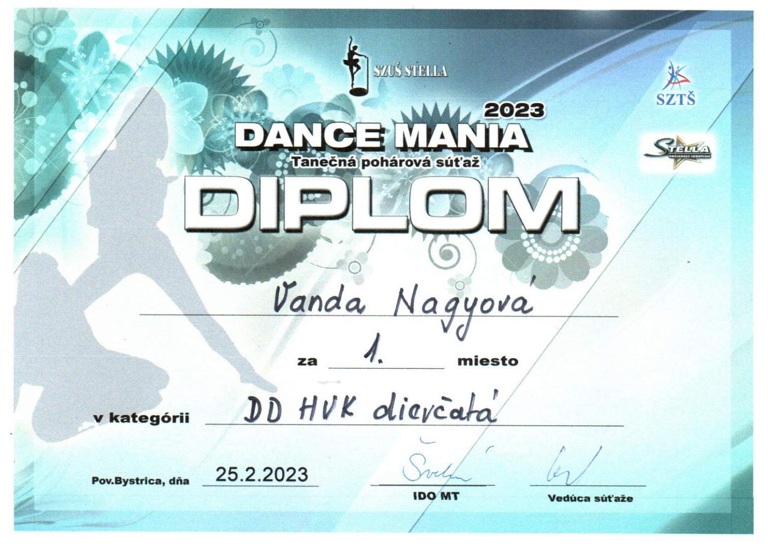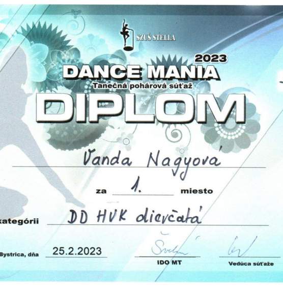 Dňa 11.03.2022 sa v Leviciach uskutočnili majstrovstvá republiky v disco tanci, kde Vanda Nagyová,