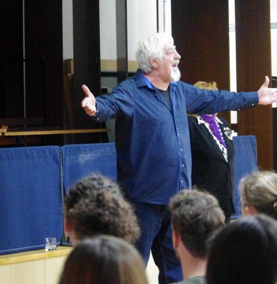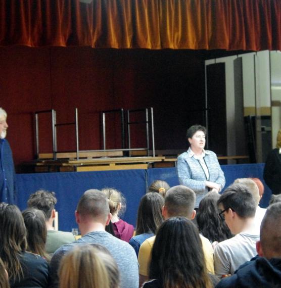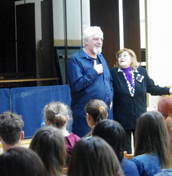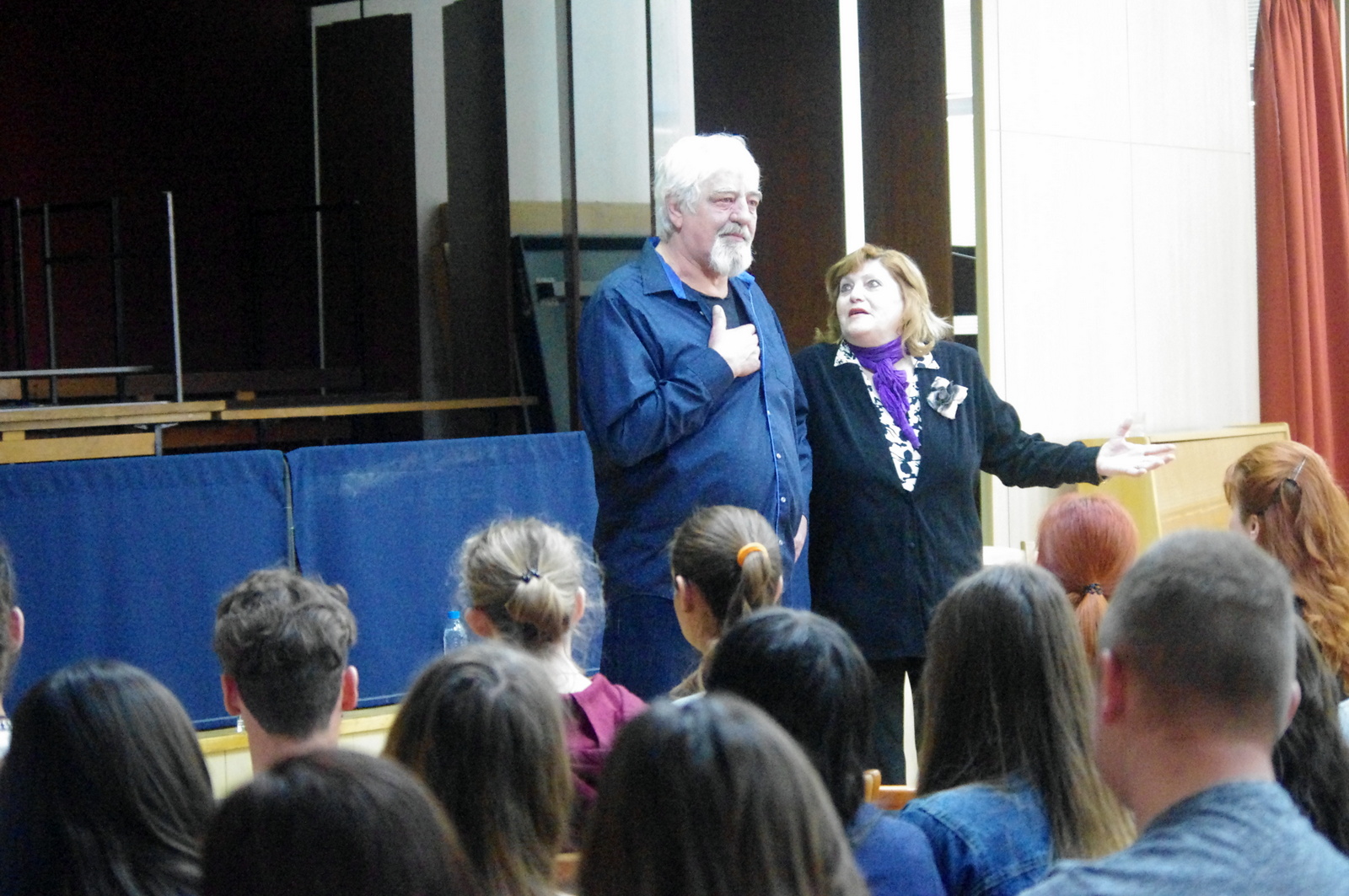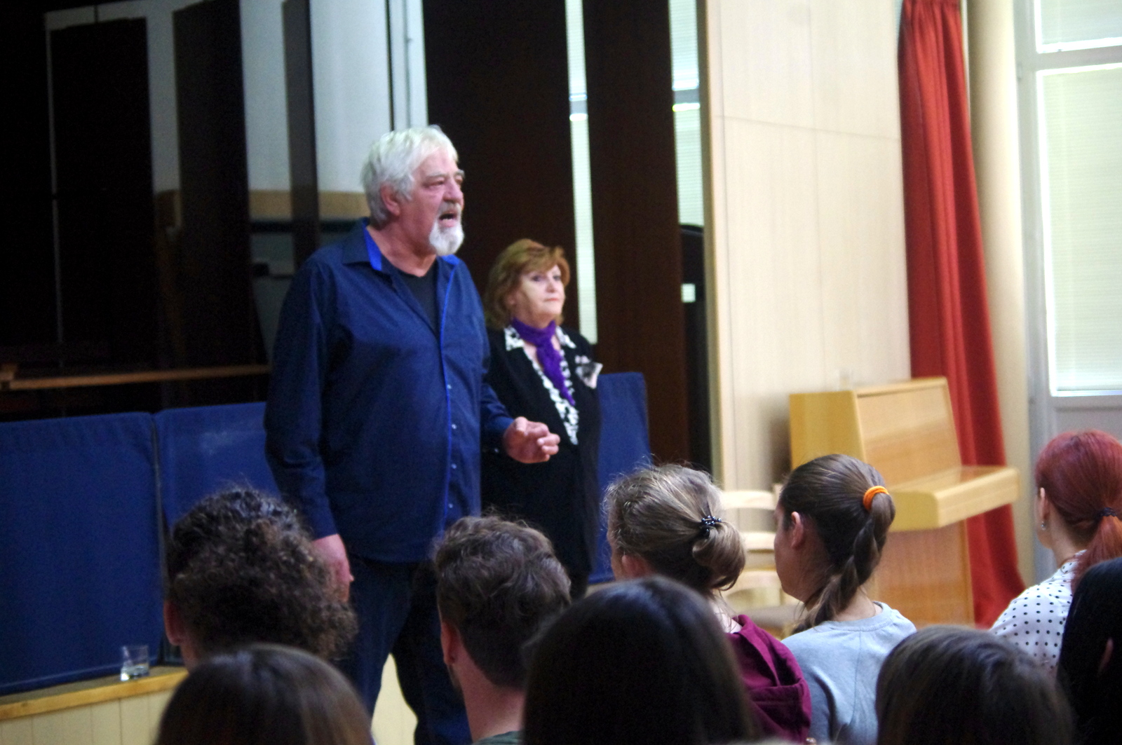 Pólos Árpád és Kövesdi Szabó Mária, a kassai Thália Színház művészei voltak iskolánk vendégei. Arany János születésének 200. évfordulója alkalmából a költő leghíresebb balladáit és költeményeit szavalták el. Előadásuk előtt röviden átismételték a diákokkal Arany életútját, ill. felelevenítették A walesi bárdok c. ballada történelmi hátterét megemlítve a walesi gesztust, hogy a magyar költőt posztumusz Montgomery Szabad Polgára címében részesítették.