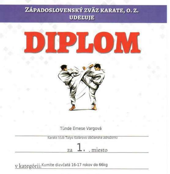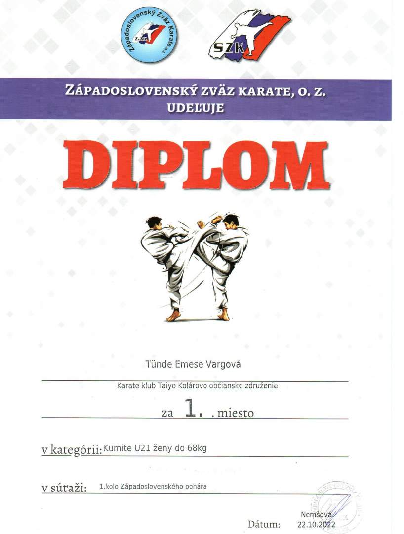 2022.10.22-én Nemšován került megrendezésre a nyugat-szlovákiai kupa karatéban, ahol a 3.SM diákja, Varga Tünde Emese remekelt, hiszen 4 kategóriában is a dobogó legfelső fokára állhatott. Eredményéhez gratulálunk!