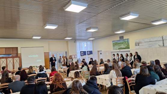 Ugyanilyen szeretettel mondunk köszönetet Méhes Renáta kollégiumvezetőnek és csapatának, akik a régi idők karácsonyának illatát és hangulatát hozzák vissza közénk. A fenyőillatú porta, a narancskarikás, mézeskalácsos, szalmadíszes élő karácsonyfa a vidéki ünnepek meghittségét idézi. Ez a hagyományt őrző díszlet nemcsak szépséget és stílust sugároz, hanem emlékeztet arra is, milyen fontos megőrizni mindazt, ami értéket és melegséget visz az ünnepbe.