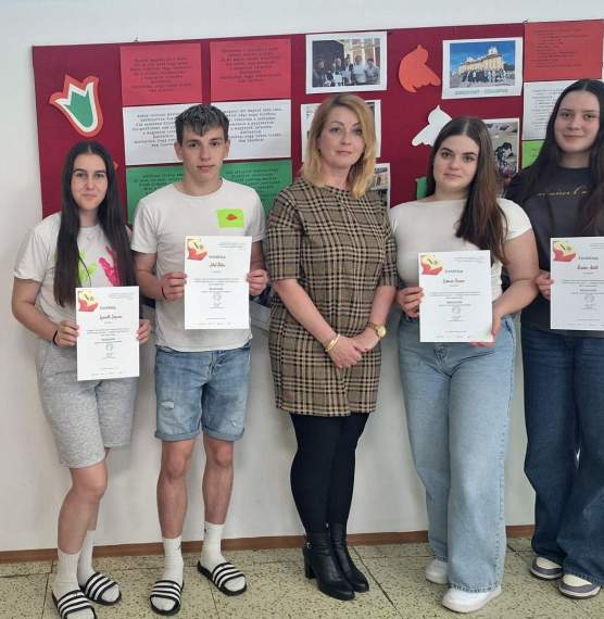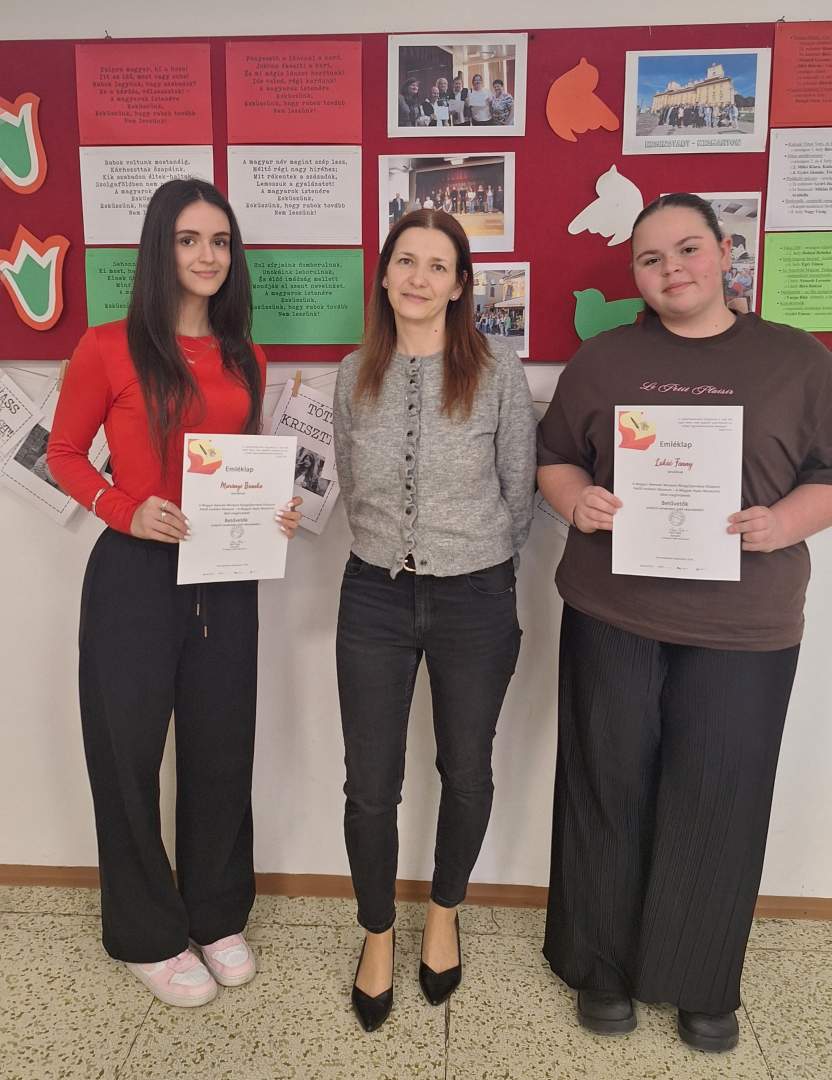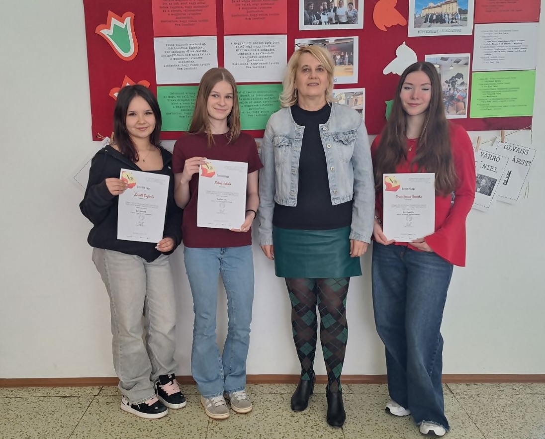 Iskolánkból kilenc diák nevezett a versenyre, amelyen a Kárpát-medence magyar lakta területeiről érkeztek résztvevők. Tanulóink (Horváth Boglárka I.HA, Halász Rebeka I.HA, Murányi Bianka I.B, Lukáč Fanny I.B, Dudás Adél III.SM, Lábodi Vivien III.SM, Šiket Péter III.SM, Szimeth Jázmin II.SM, Vereš Vanessa Veronika III.B) teljesítményét a Magyar Nyelv Múzeuma oklevéllel ismerte el.