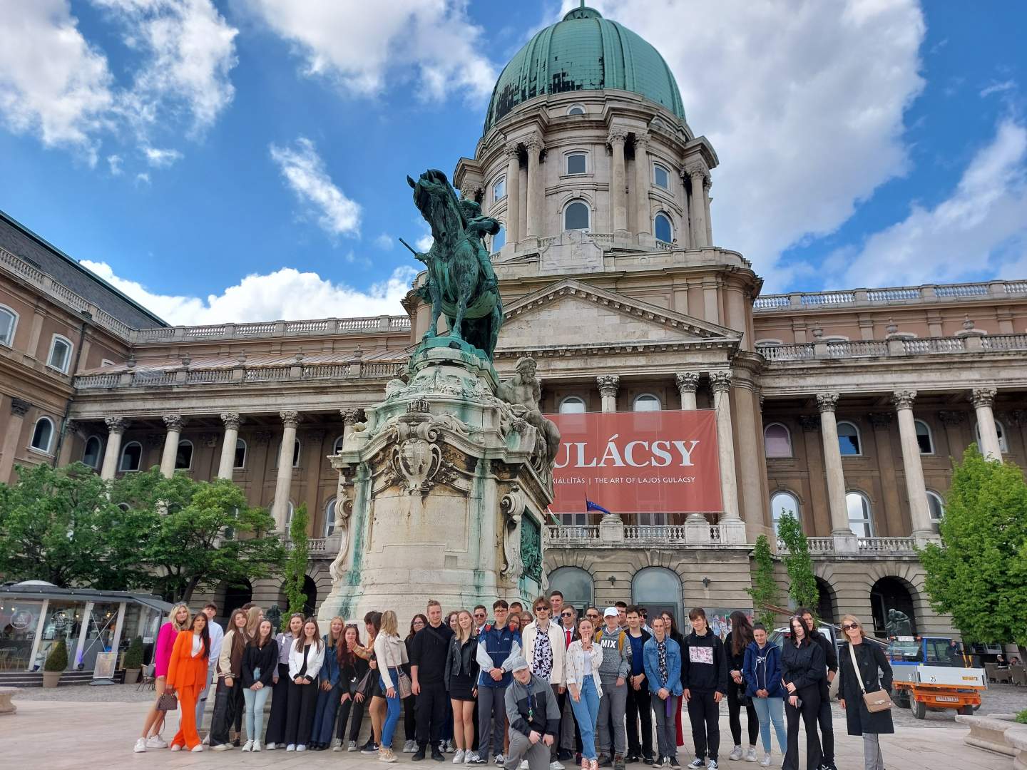 Diákjaink rendkívül tartalmas és emlékezetes kiránduláson vehettek részt 2023. május 10-én Budapesten. A magyar fővárosban töltött napjukat a budai Várnegyedben tett sétával kezdték, ahol a pesti oldal páratlanul szép panorámájában gyönyörködhettek, valamint megcsodálhatták a Várpalota impozáns épületeit. Délután Presser Gábor és Sztevanovity Dusán töretlen sikerű musicaljét, A padlást tekintették meg a Vígszínházban. Az élménydús napot egy pesti sétával zárták, érintve a Parlament épületét, József Attila A Dunánál című verse ihlette szobrát, ill. a Cipők a Duna-parton holokauszt-emlékművet.