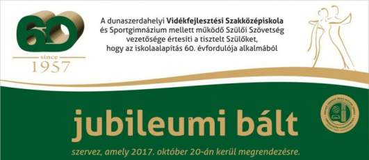 A dunaszerdahelyi Vidékfejlesztési Szakközépiskola és Sportgimnázium mellett működő Szülői Szövetség vezetősége jubileumi bált rendez az iskolaalapítás 60. évfordulója alkalmából.