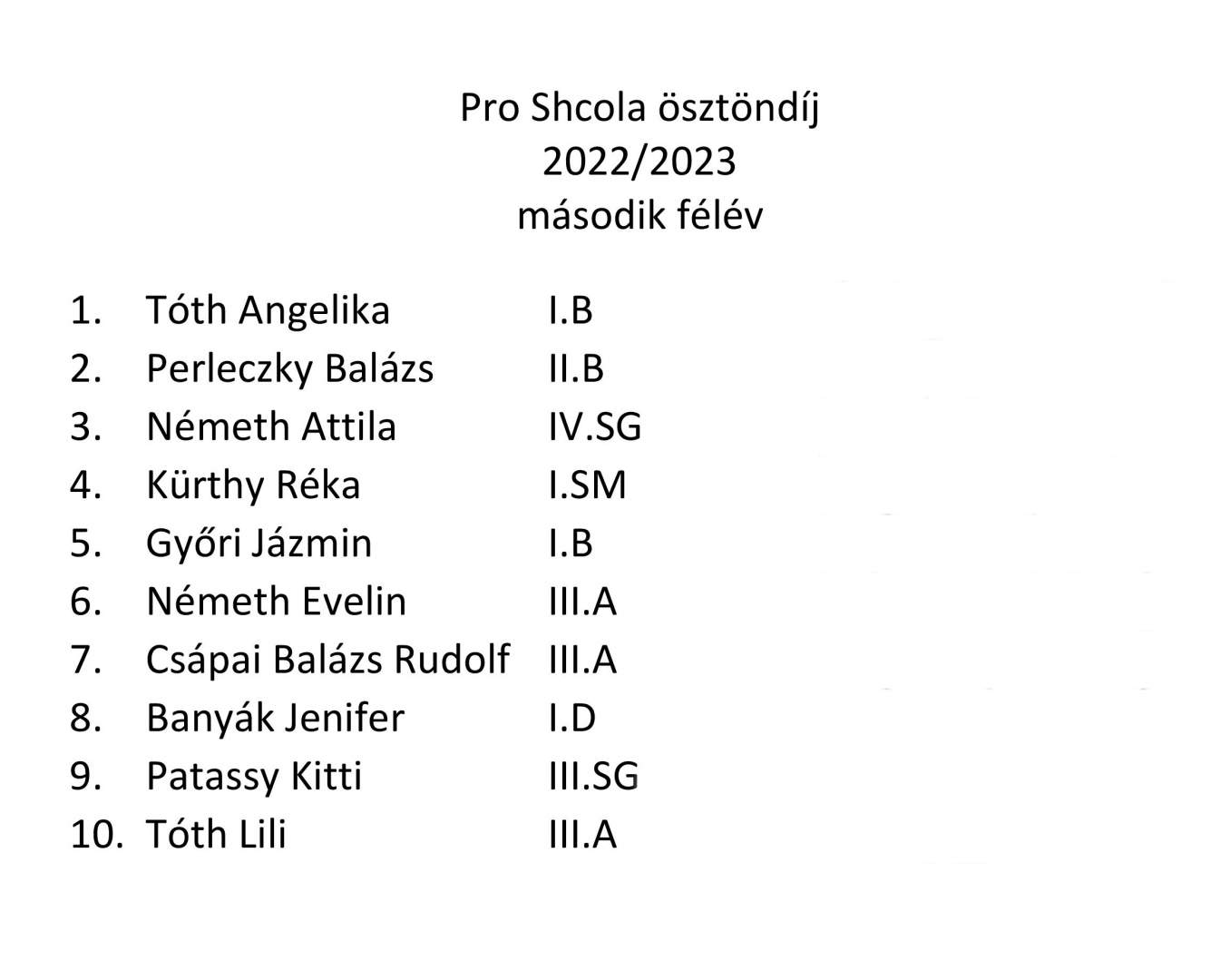 Pro Schola 2022/2023 II. félév