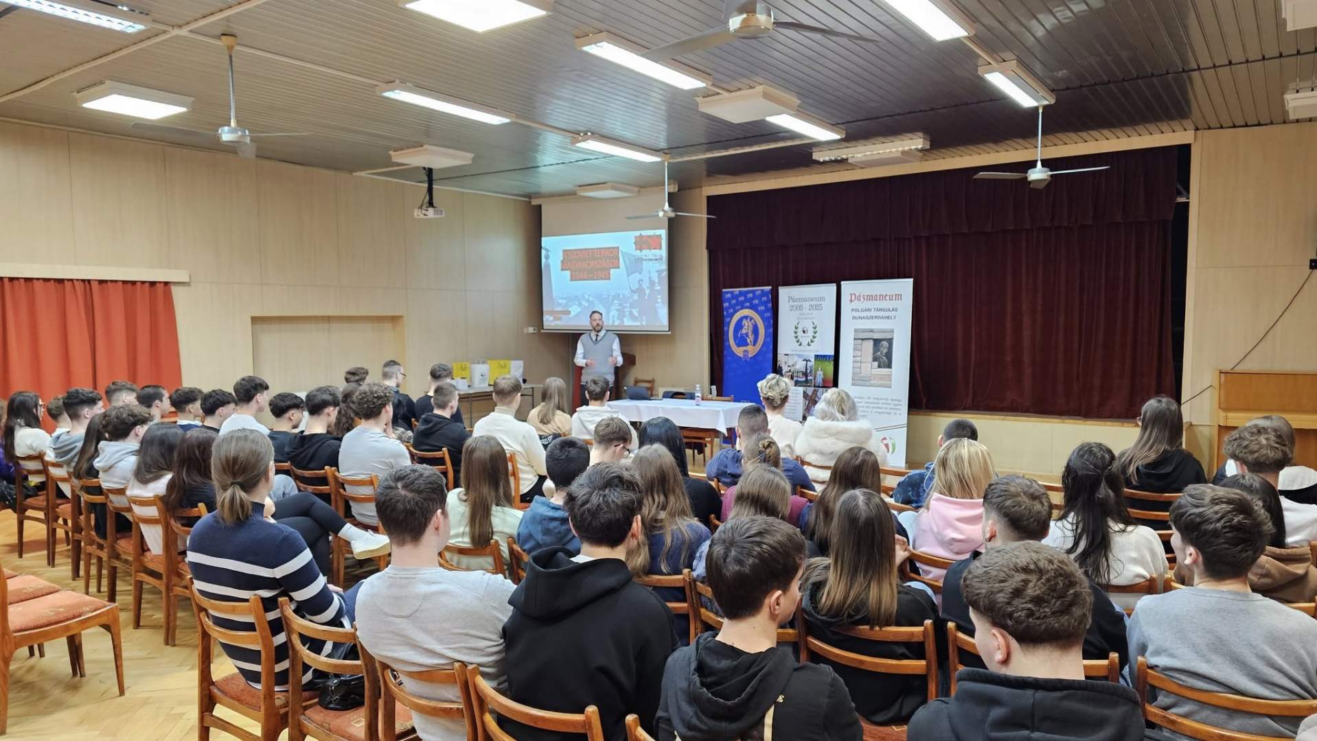 2025. február 21-én rendhagyó történelemórára került sor a Kommunizmus Áldozatainak Emléknapja alkalmából iskolánk színházermében  a Pázmaneum Társulás szervezésében.