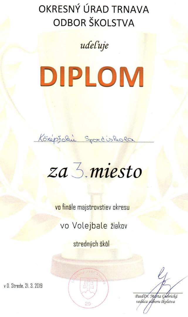 2019. 03. 20 - án a dunaszerdahelyi Vidékfejlesztési Szakközépiskola sportosztálya nyerte a dunaszerdahelyi Magángimnáziumban rendezett járási röplabda döntőt. A második helyen a Vámbéry Ármin Gimnázium csapata, a harmadik helyen a dunaszerdahelyi Középfokú Sportiskola csapata végzett.