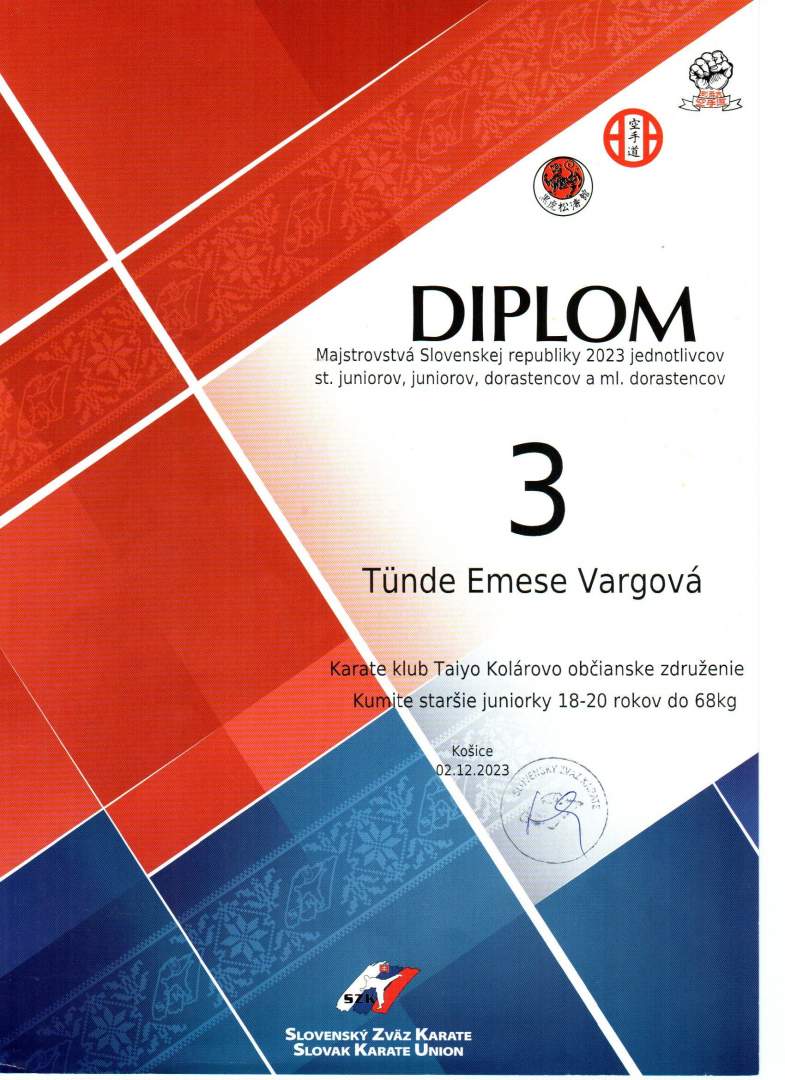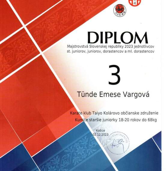 2023.12.02-án Kassán került megredezésre az országos kumite karate bajnokság, amelyen Varga Tünde Emese a IV. SM diákja a nagyon szép 3. helyen végzett a felnőtt korosztályban. Eredményéhez gratulálunk!