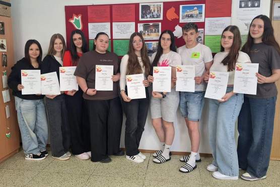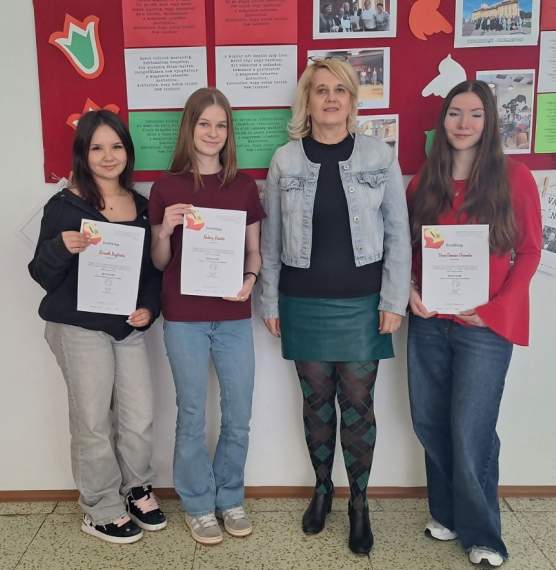 Iskolánkból kilenc diák nevezett a versenyre, amelyen a Kárpát-medence magyar lakta területeiről érkeztek résztvevők. Tanulóink (Horváth Boglárka I.HA, Halász Rebeka I.HA, Murányi Bianka I.B, Lukáč Fanny I.B, Dudás Adél III.SM, Lábodi Vivien III.SM, Šiket Péter III.SM, Szimeth Jázmin II.SM, Vereš Vanessa Veronika III.B) teljesítményét a Magyar Nyelv Múzeuma oklevéllel ismerte el.