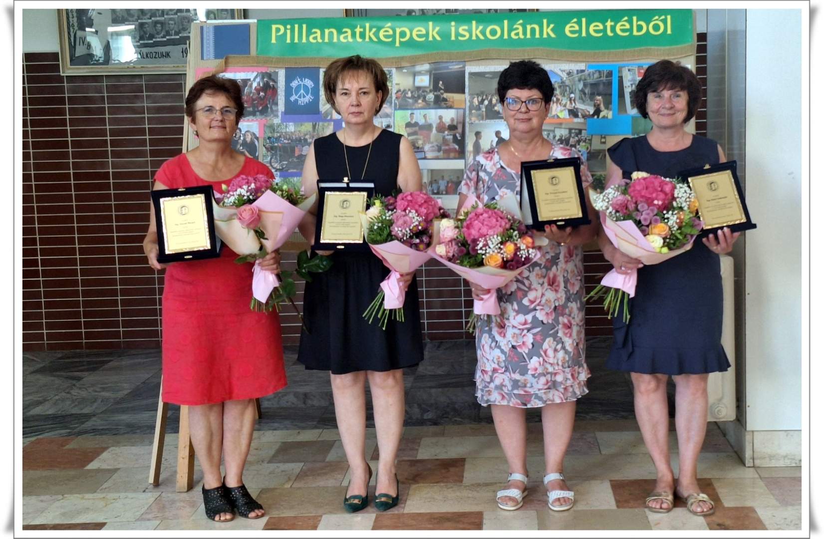 Ezúton is szeretnénk köszönetet mondani mind a négy pedagógusnak az évtizedeken át végzett lelkiismeretes munkáért, türelemért, hűségért és az iskolánk iránti megingathatatlan elköteleződésért. Nemcsak tanítottak, hanem jelenlétükkel, hozzáállásukkal és munkájuk minőségével formálták azt a légkört, amelyre méltán lehetünk büszkék.